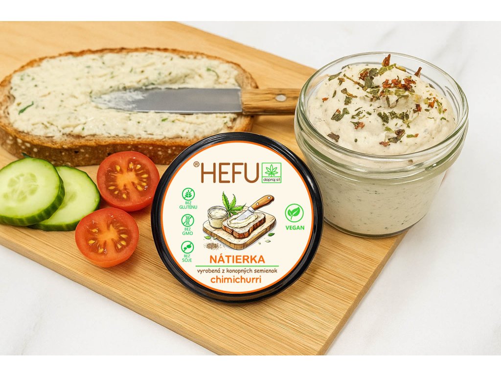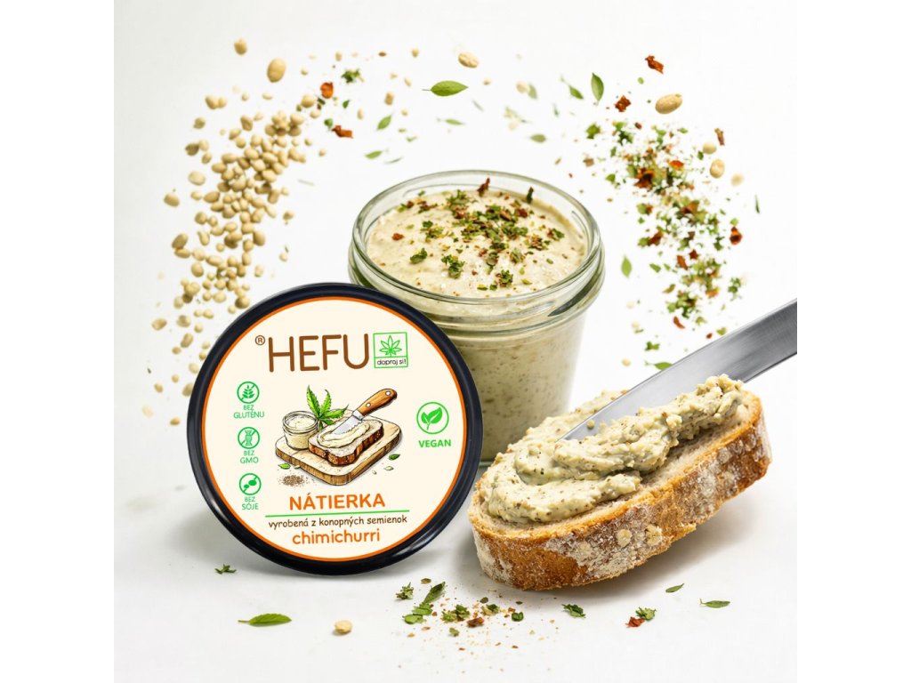 HEFU NÁTIERKA 120g – Nátierka z konopných semienok. S bylinnou zmesou Chimichurri. Jemne pikantná. Pasterizovaná.